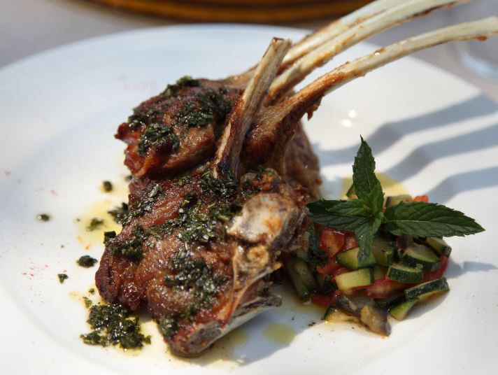 Frenched Lamb Cutlet served with baby zucchini & chimichurri